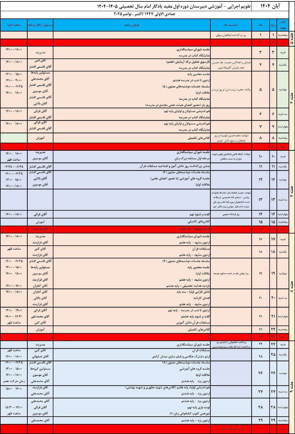 • مسئول پایه نهم