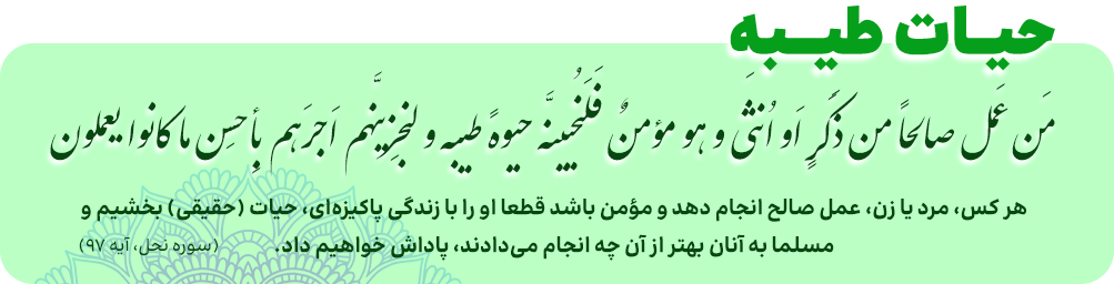 حیات طیبه (زندگی پاک) وضع مطلوب زندگی بشر در همه‌ی ابعاد و مراتب، براساس مبانی و ارزش‌های الهی براساس نظام معیار مکتب اهل‌بیت است که تحقق آن باعث دست‌یابی به غایت زندگی یعنی قرب‌الهی خواهد شد. بر این اساس مدرسه شرایط را برای آگاهی، علاقمندی و عمل آزادانه و آگاهانه دانش‌آموزان به نظام معیار فراهم می‌کند. دست‌یابی به زندگی پاک که در عرصه‌های فردی، خانوادگی و اجتماعی می‌تواند ظهور یابد، ناشی از ایمان و عمل صالح است. بنابراین زندگی پاک نتیجه و حاصل تربیت صحیح است. درک عمیق معنای زندگی و فلسفه حیات در مبانی و منابع اسلامی، پشتوانه نظری مدرسه زندگی را تامین می‌کند. در مدرسه زندگی که هدفش زمینه سازی برای درک حیات طیبه است؛ دانش آموزان در مواجهه با همه پدیده‌ها از جمله آموزه‌های مذهبی دارای نقش عاملیت هستند و اعمال مذهبی را با انتخاب خود انجام می‌دهند. البته دامنه‌ی اختیار آن‌ها تا حدی است که به تقابل و تبلیغ در مقابل نظام معیار تعبیر نشود و نیز به آزادی سایرین لطمه وارد نکند.