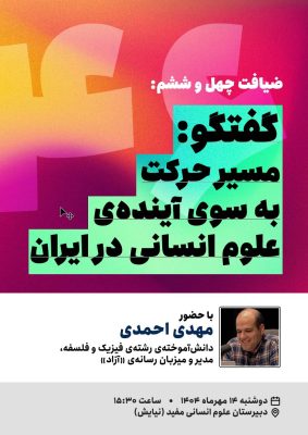 با حضور مهدی احمدی،دانش‌آموخته‌ی رشته‌ی فیزیک و فلسفه،مدیر و میزبان رسانه‌ی «آزاد»