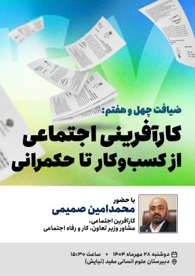 با حضور محمدامین صمیمی،کارآفرین اجتماعی، مشاور وزیر تعاون کار و رفاه اجتماعی