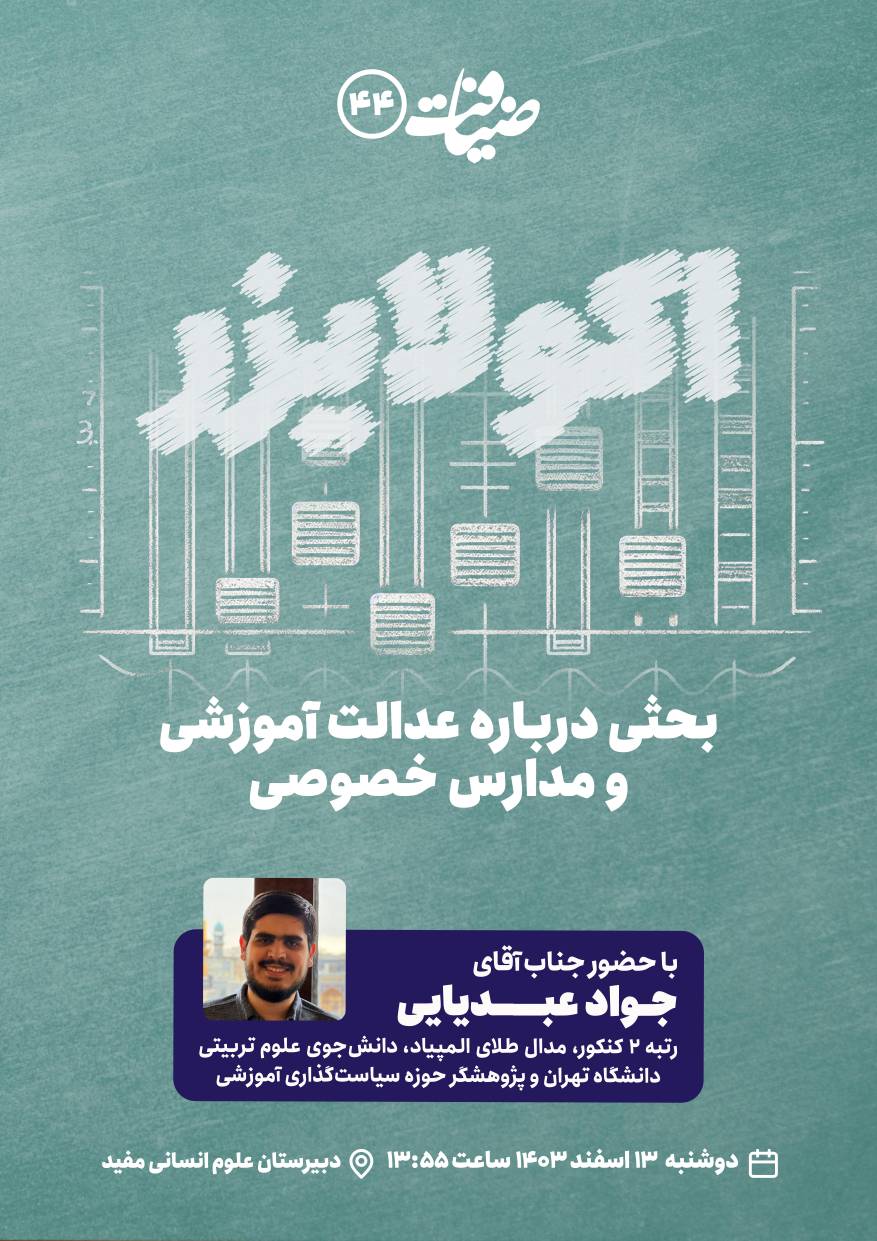 با حضور جواد عبدیائی، رتبه ۲ کنکور، مدال طلای المپیاد، دانش‌جوی علوم تربیتی دانشگاه تهران و پژوهشگر حوزه سیاست‌گذاری آموزشی