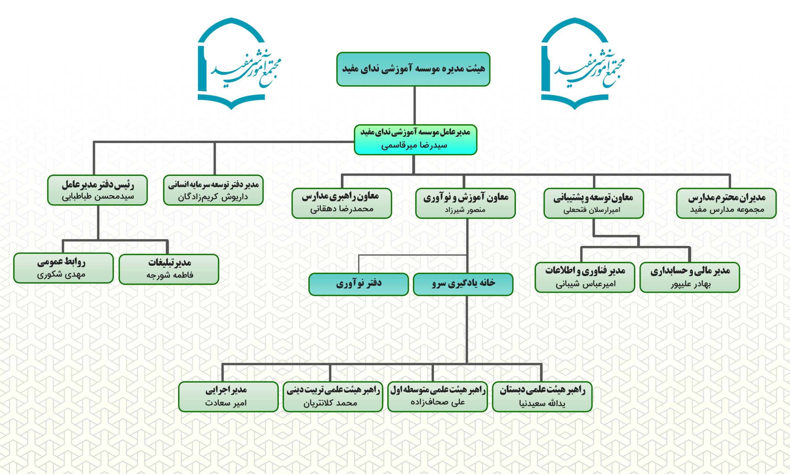 چارت سازمانی مؤسسه آموزشی ندای مفید به صورت متنی