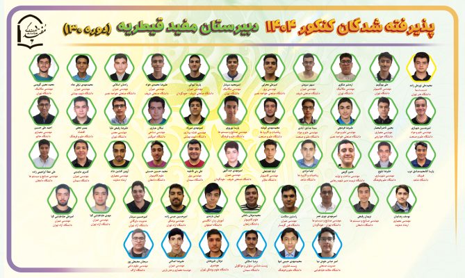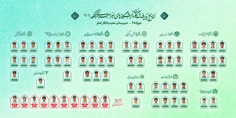 در ادامه، فهرست نام دانشآموزان پذیرفتهشده در دانشگاههای برتر کشور به صورت تصویر تقدیم میگردد: