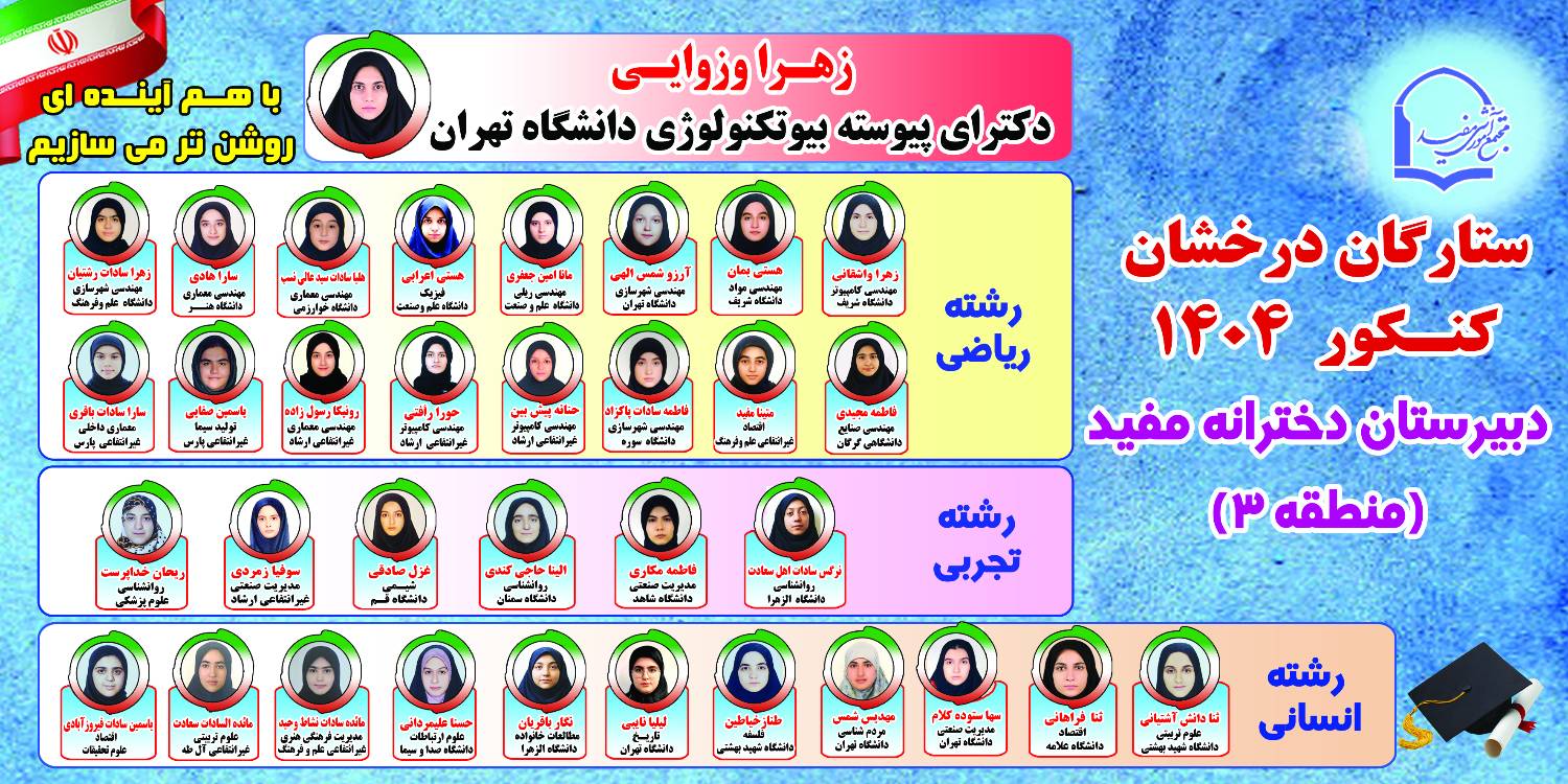 با نهایت افتخار و خوشحالی، قبولی دانشآموختگان عزیز مدارس مفید را در برترین دانشگاههای کشور تبریک میگوییم.
