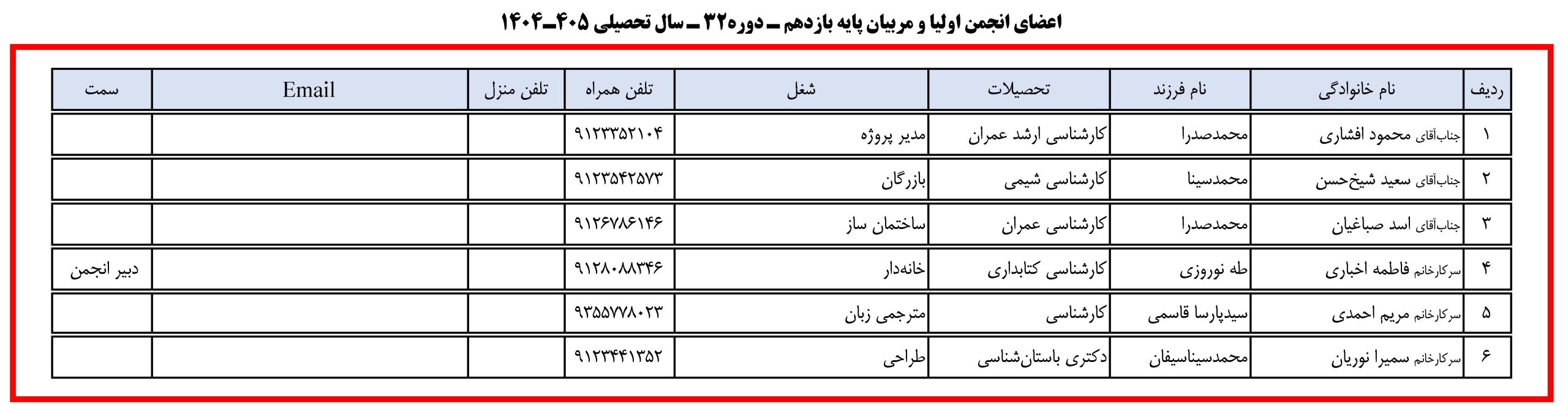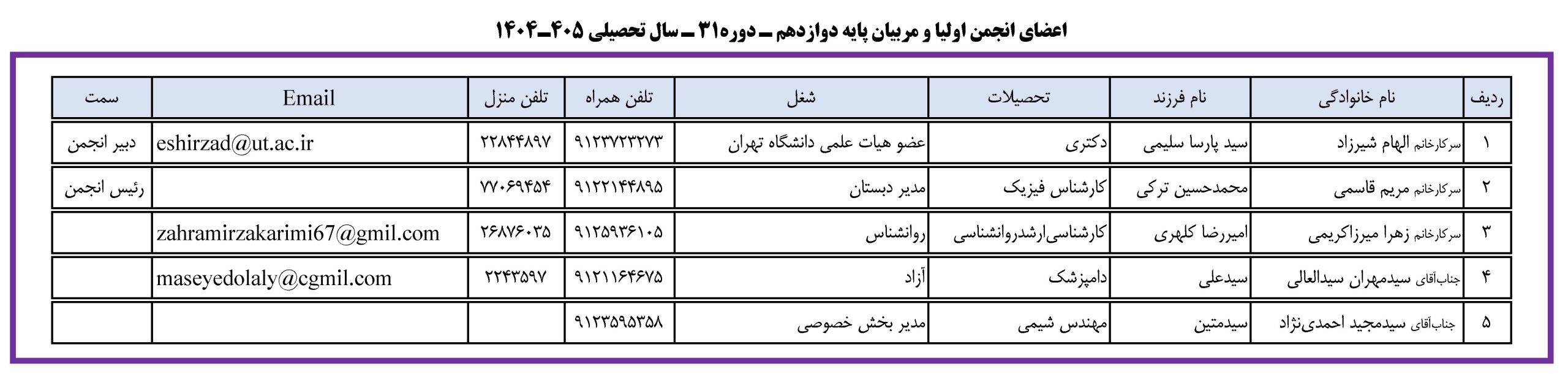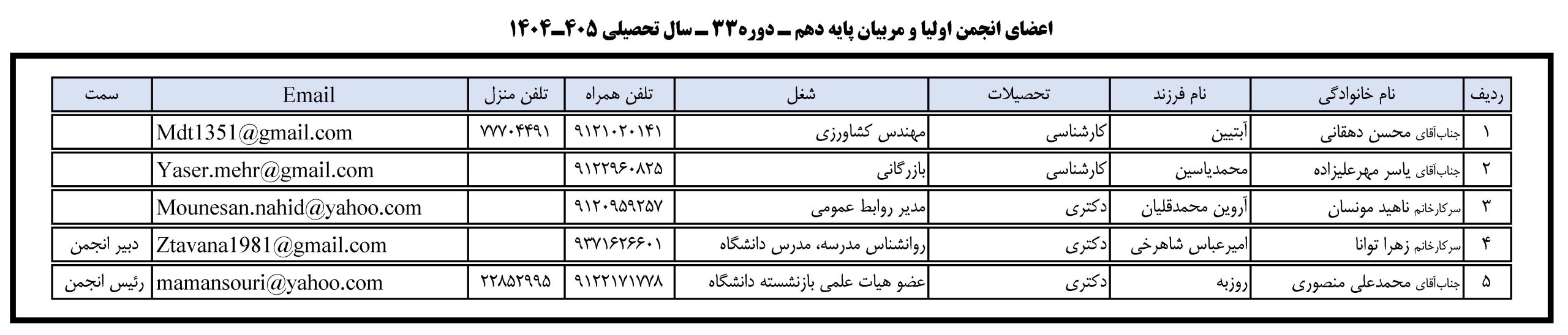 اعضای محترم انجمن اولیا و مربیان دبیرستان مفید قیطریه در سال تحصیلی ۱۴۰۵-۱۴۰۴