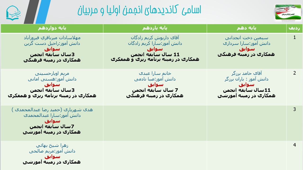 اخباربرگزاری جلسه انتخابات انجمن اولیا ومربیان۱۴۰۵-۱۴۰۴ ارسال شده در ۶ مهر ۱۴۰۴۲۰ آبان ۱۴۰۴ توسط خانم ملایی 06 مهر با آرزوی توفیق روزافزون برای اعضای منتخب و قدردانی از زحمات ارزشمند سایر شرکتکنندگان. شروع سال تحصیلی ۱۴۰۵-۱۴۰۴ مسابقهای ادبی (به مناسبت روز بزرگداشت مولوی)