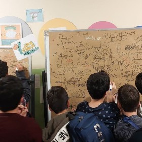 🔸 در این برنامه تابلوهایی برای دانشآموزان تدارک دیده شده بود تا بتوانند یک یادگاری دانشآموزی از خود به جا بگذارند!
