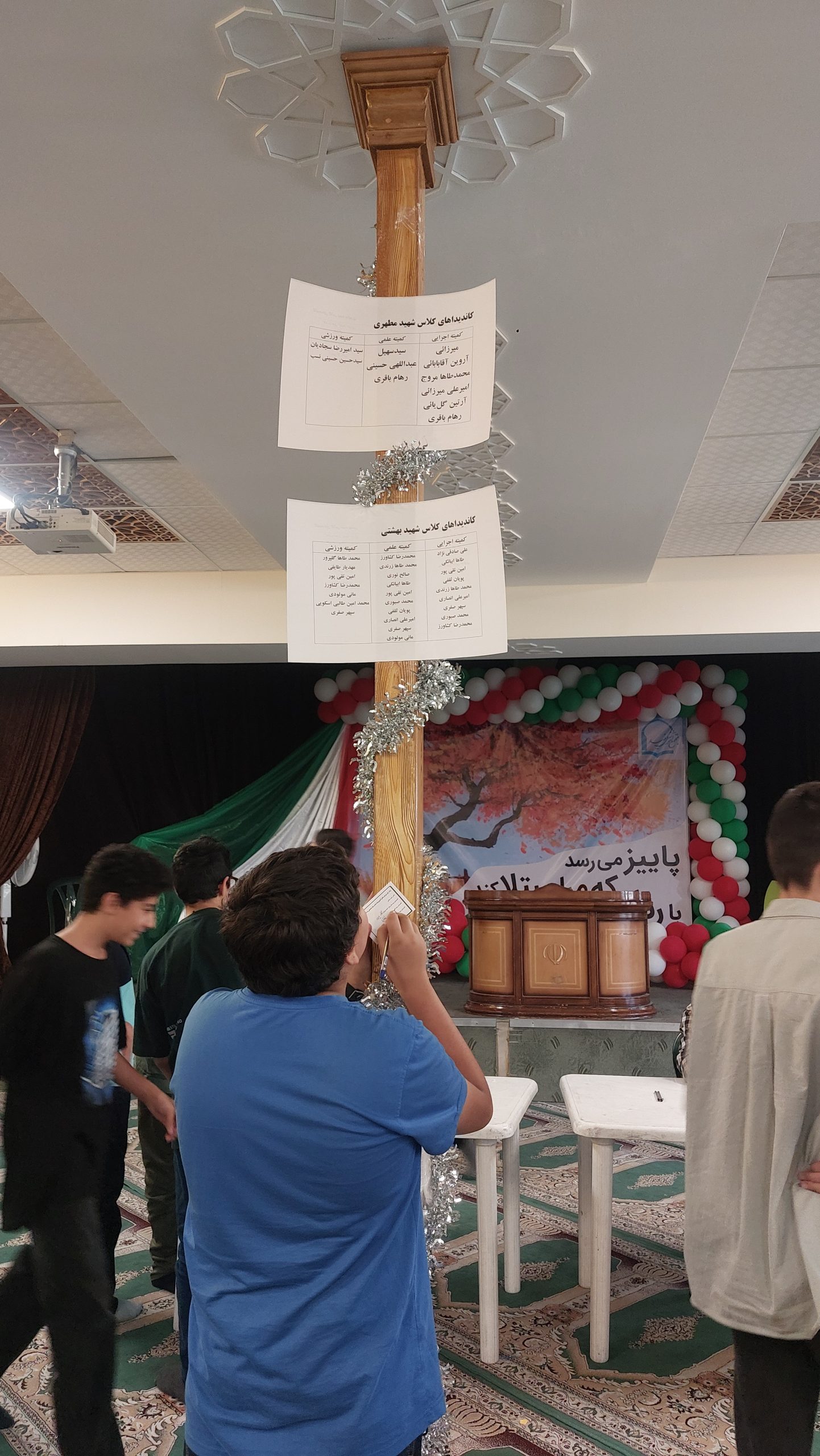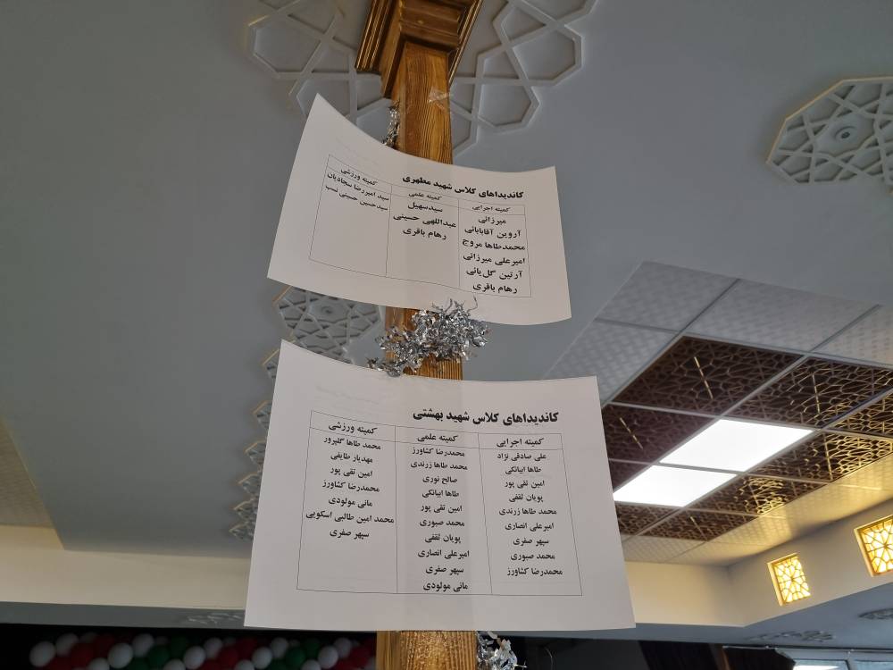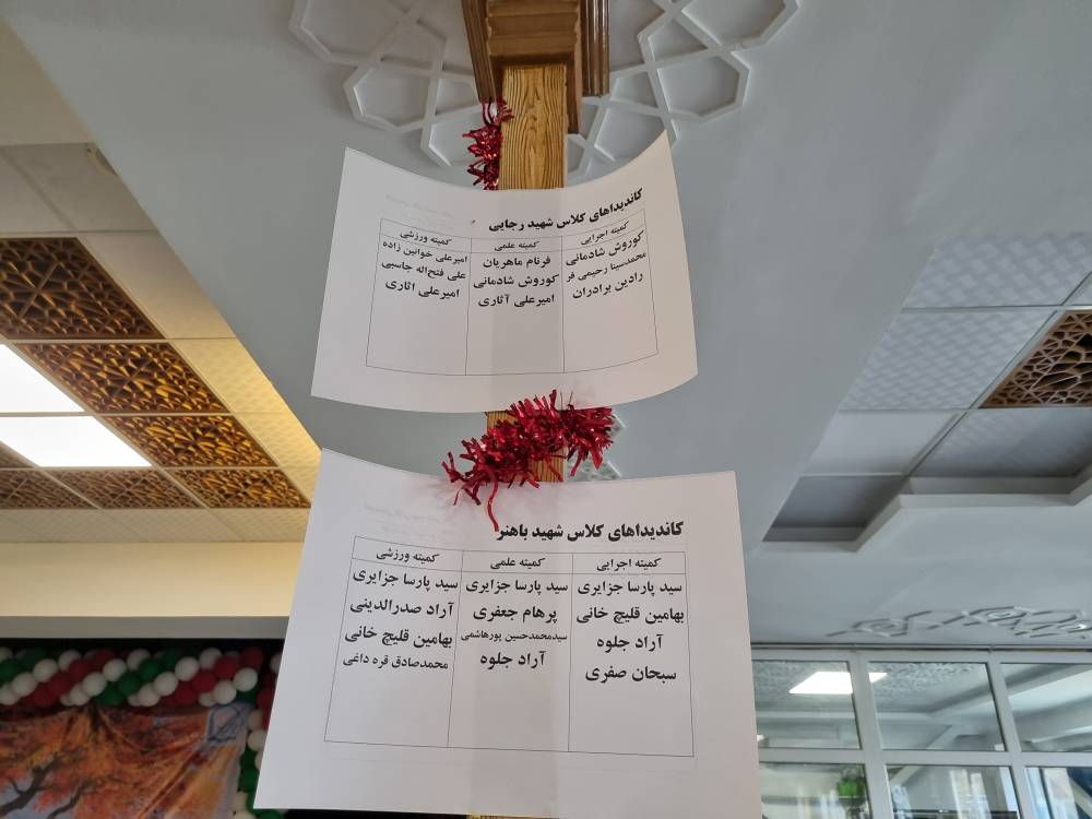 🔹این انتخابات امروز یکشنبه ۶ مهرماه، پس از تبلیغات نامزدها در هر کلاس، در مکان نمازخانهی مدرسه برگزار شد که با استقبال خوب دانشآموزان مسئولیتپذیر پایه همراه بود!