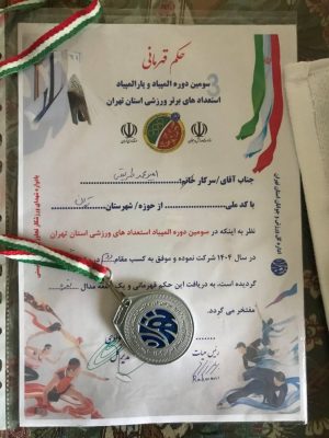 کسب رتبهی دوم در مسابقات انتخابی زیر ۱۶ سال استان تهران در رشتهی تنیس را به تو و خانوادهی محترمت تبریک میگوییم.
