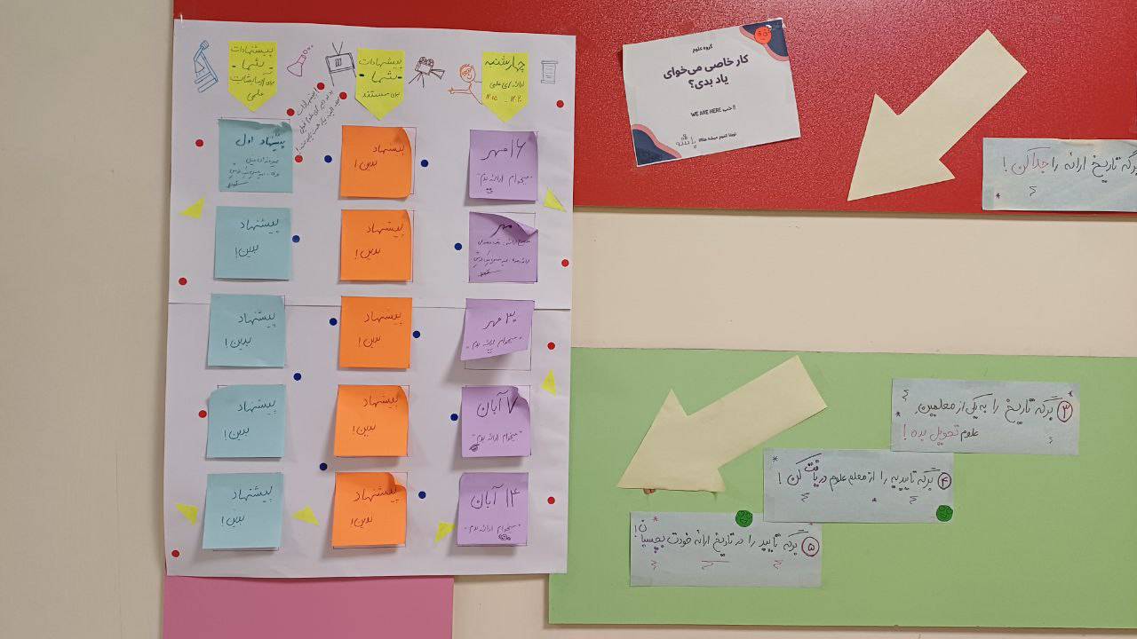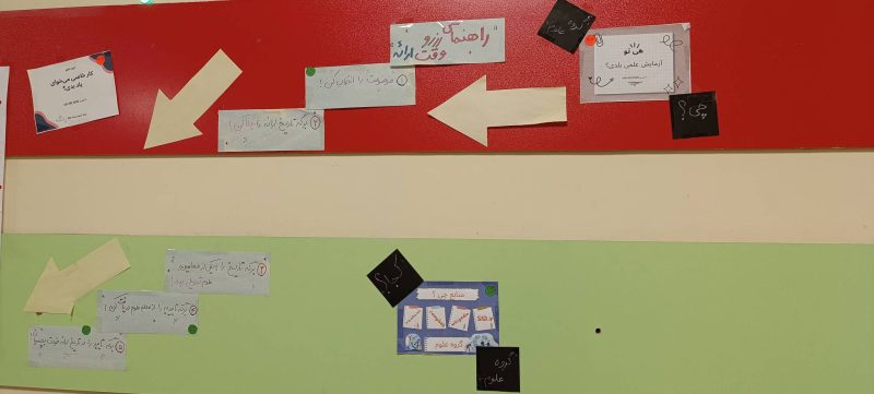 🥼در صورتی که پیشنهادی برای انجام آزمایش دارید روی یکی از برچسب های ردیف وسط بنویسید و به معلمین علوم تحویل بدید.