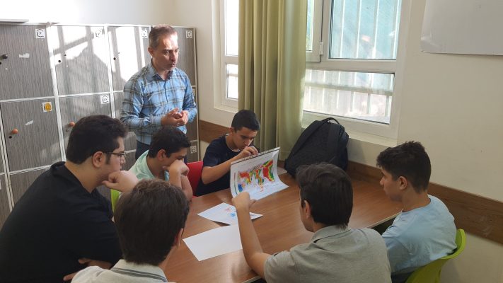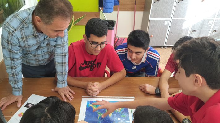 روشهای تدریس فعال که در آنها، دانش آموزان در روند یادگیری نقش اساسی دارند ، از موثرترین شیوه های تدریس هستند. اینجا و در این طرح درس کلاس علوم هم از این شیوه استفاده شده است.به گونه ای که برای تدریس درس “زمین ساخت ورقه ای” ، بچه ها به ۴ گروه تقسیم شدند و هر گروه از یک منظر به مطالعه تغییرات زمین پرداختند. یک گروه نقشه آتشفشانها را مطالعه کردند ، گروه دیگر نقشه پراکندگی زلزله ها را بررسی نمودند. گروه دیگر زمین را از نظر سن لایه های آن مطالعه کردند و گروه آخر نیز بر روی نقشه توپوگرافی زمین کار کردند.آن ها تلاش کردند با مطالعه بخش خود شواهدی پیدا کنند که بر اساس آن ها صفحات زمین را رسم نمایند. بعد از مطالعه جدی در این قسمت ، دسته های جدیدی تشکیل شدند که در هرکدام، نماینده ای از این ۴ گروه اولیه حضور داشتند. یعنی در هر دسته یک نفر زمین دیرینه شناس، یک نفر توپوگرافیست ، یک نفر آتشفشان شناس و یک نفر زلزله شناس وجود داشت. سپس هر کدام با ارائه نقشه هایی که در پارت اول کلاس کشیده بودند نظر خود را ارائه کردند و در نهایت هم با تطابق و بحث این ۴ نفر، برساخت جدیدی شکل گرفت که در آن ملاحظات هر کارشناس لحاظ شده بود. ماحصل کارِ گروه ها نقشه ای از صفحات تکتونیکی زمین بود.بچه ها در این کلاس، فعالانه وارد مسیر اکتشافی شدند و با کنجکاوی هدایت شده ای ، در کنار هم توانستند مفهوم زمین شناسی ورقه ای را شکل دهی مفهومی کنند.نهایتا هم با تسهیلگری معلم ، نتایجشان را با هم به اشتراک گذاشتند و در انتها نیز به بازاندیشی مسیر پرداختند و برداشتشان از درس را برای خود خلاصه نویسی کردند.
