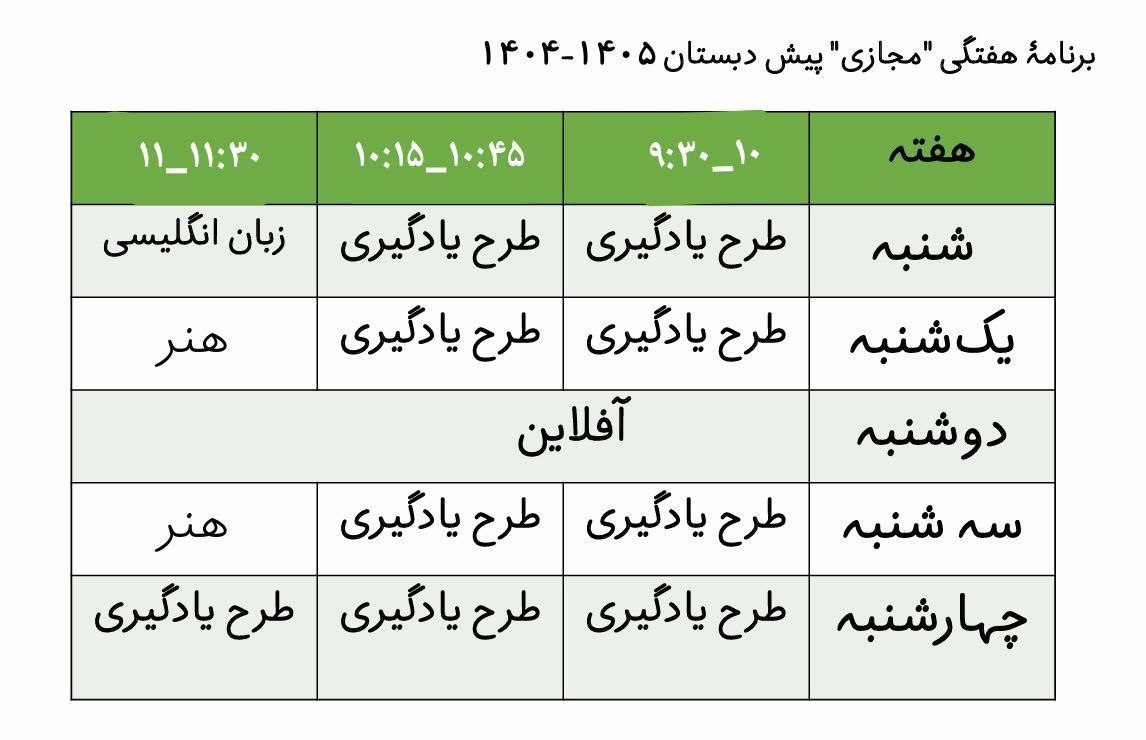 معرفی تیم پایه پیش‌دبستان (ساعات ملاقات)